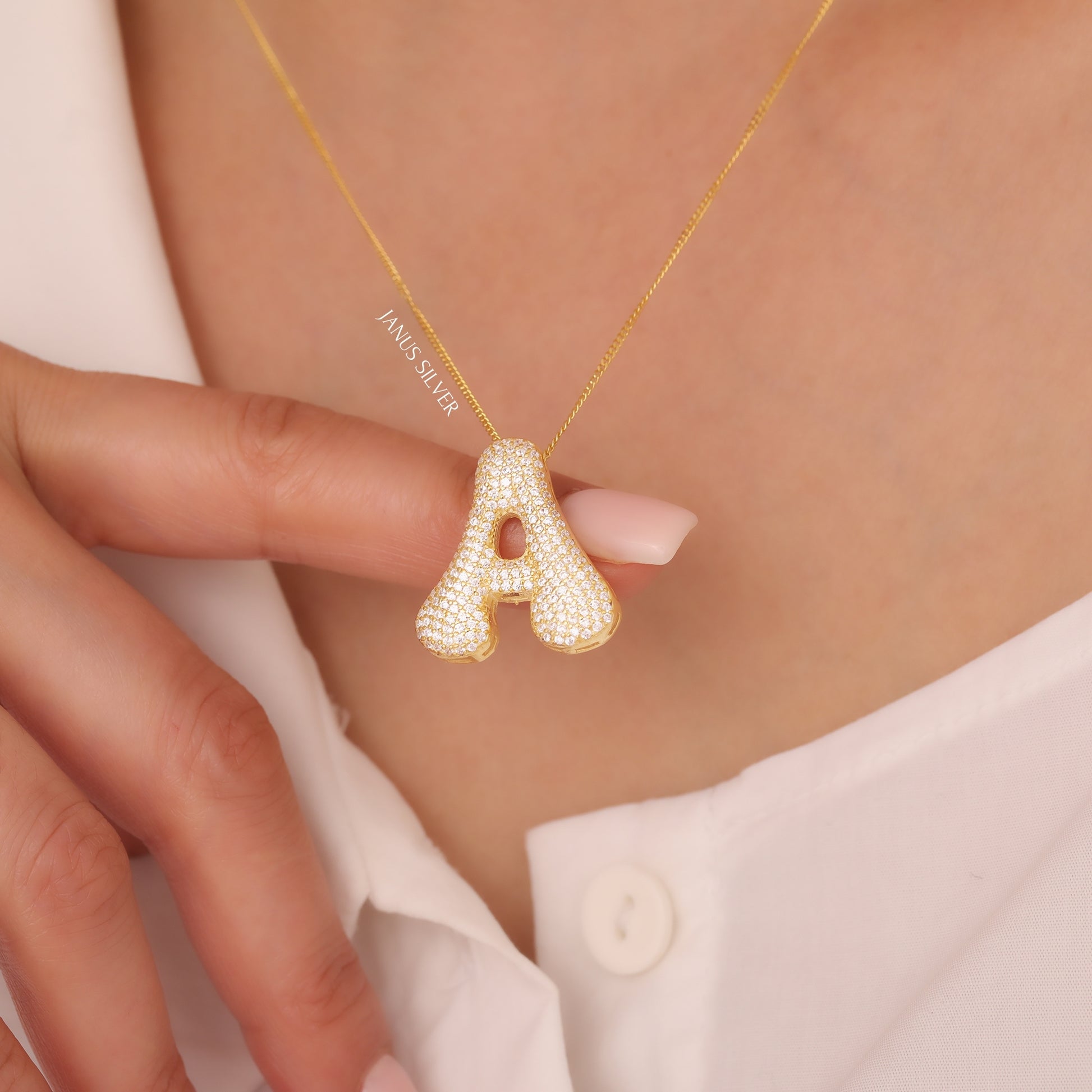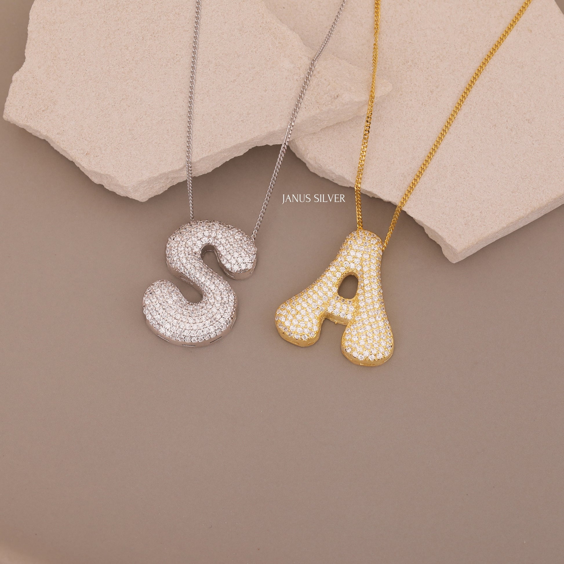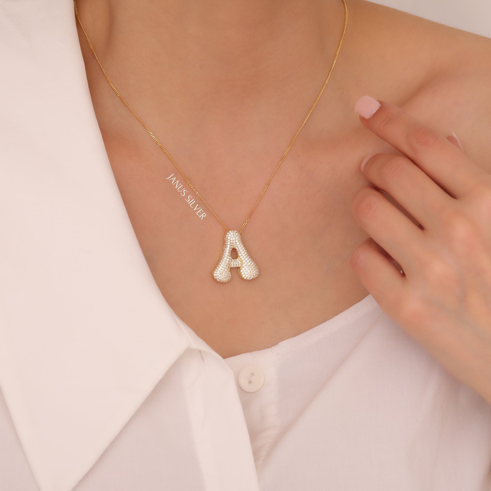 Custom Bubble Letter Necklace, Balloon Bubble Initial Necklace with Zircon Stone