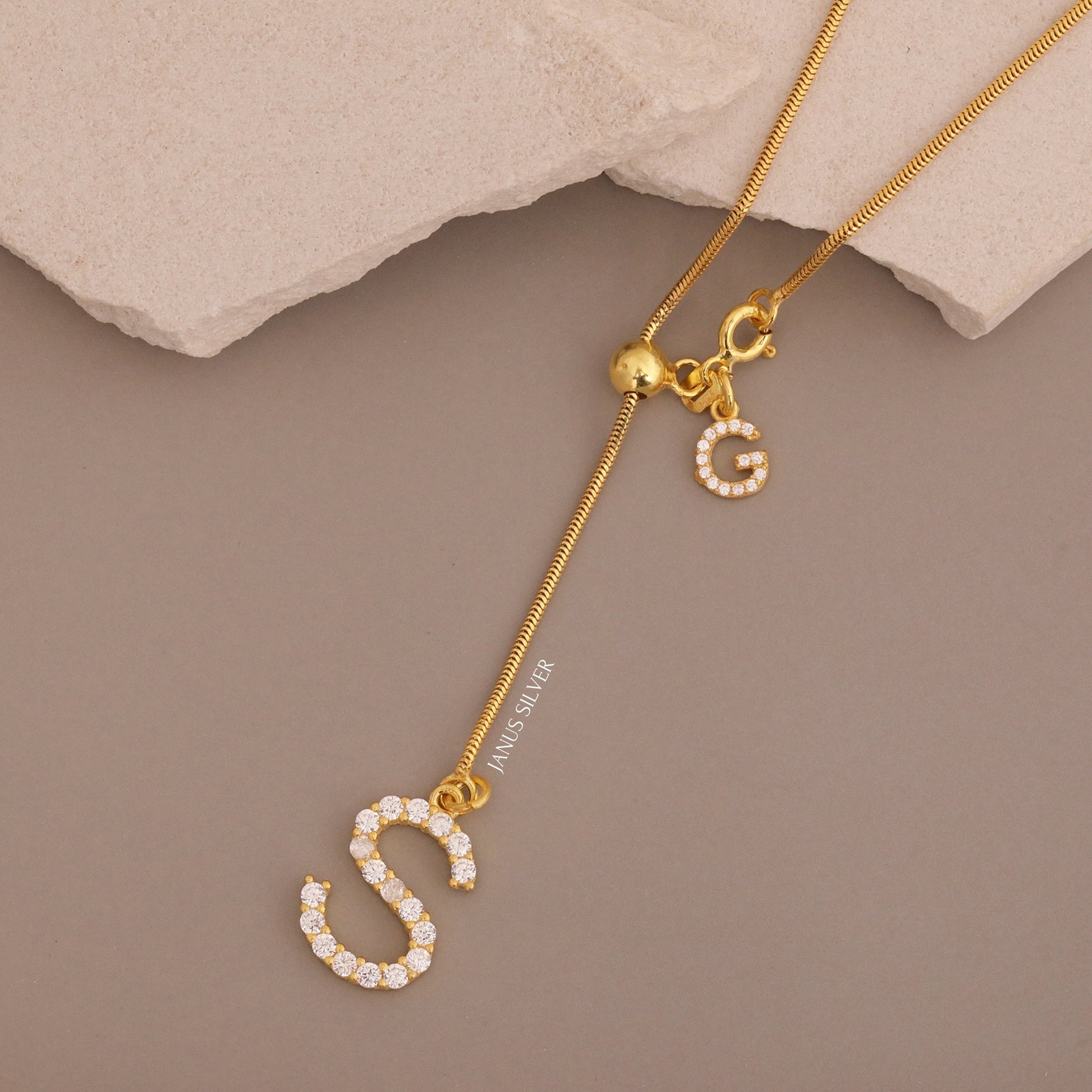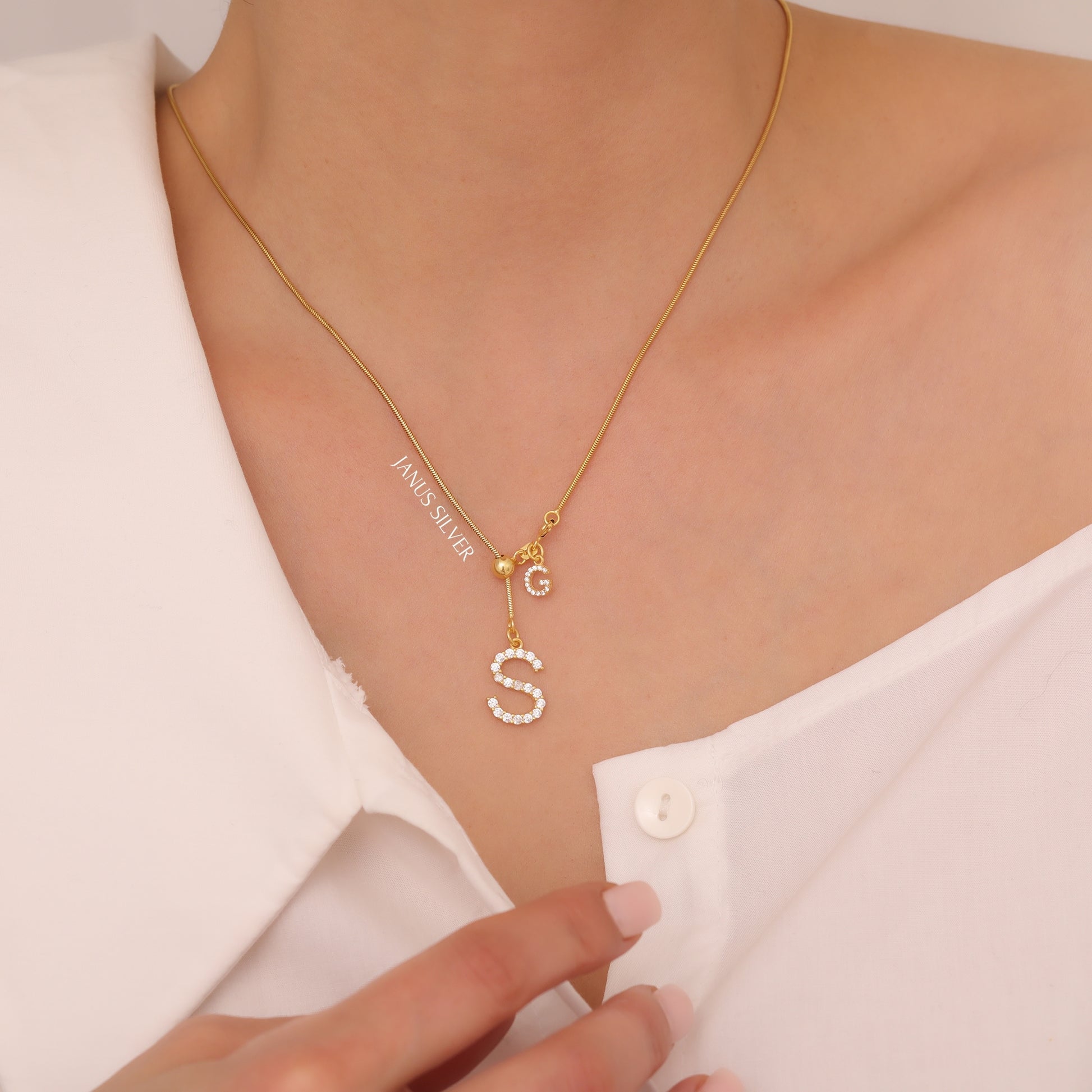 Custom Pave Letter Couple Necklace, Clasp Closure Two Initial Necklace